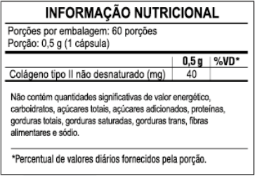 O colágeno tipo II é a principal proteína estrutural na cartilagem que é responsável pela sua resistência, tração e firmeza. Por ser não desnaturado, mantendo na íntegra a estrutura molecular, esse suplemento age influenciando o desenvolvimento da tolerância imune, melhorando a flexibilidade em pessoas com artrite reumatoide e osteoartrite, trazendo mais mobilidade e qualidade de vida.