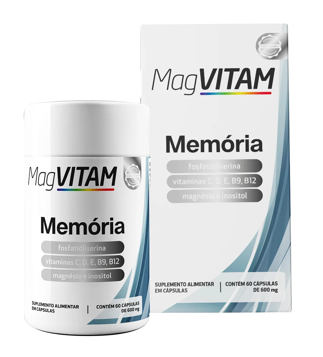 O Memória da MagVITAM é um suplemento formulado para promover a saúde do cérebro, combinando Fosfatidilserina, Magnésio, Inositol e vitaminas essenciais. Ele auxilia na melhora da memória, raciocínio, atenção e funções cognitivas, além de contribuir para o humor e a concentração. A Fosfatidilserina é fundamental para a saúde celular do cérebro, enquanto o Inositol ajuda a regular neurotransmissores e reduz a fadiga mental.